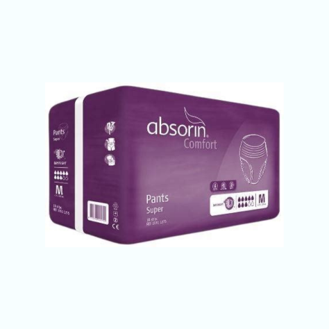 De Absorin Comfort Pants Super Night M zijn discrete pull-up incontinentiebroekjes voor zwaar urineverlies, ideaal voor ’s nachts. Absorptieniveau 8.