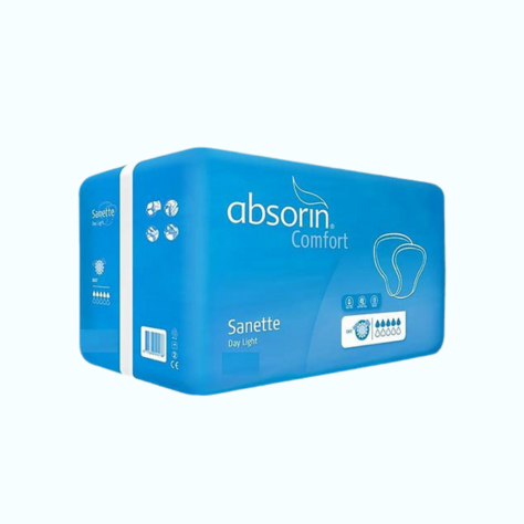 Absorin Comfort Sanette Day Light is een anatomisch gevormd inlegverband, geschikt voor voor matig urine- en ontlastingsverlies gedurende de dag. Absorptieniveau 5.